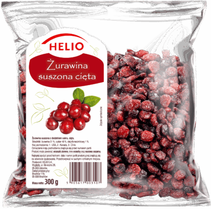 Add a unique flavor to your dishes and snacks with HELIO Dried Cranberries, Cut – carefully selected fruits that delight with their sweetness and delicate tartness. They are the perfect addition to muesli, yogurt, cakes, salads, and even meat dishes.